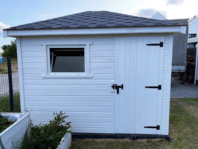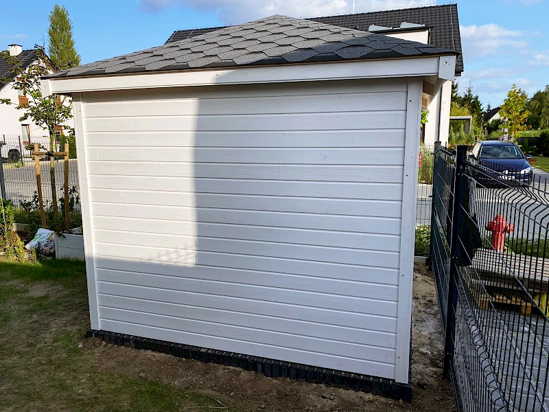 • Domek pokryty gontem bitumicznym (kolor i wzór do wyboru klienta)