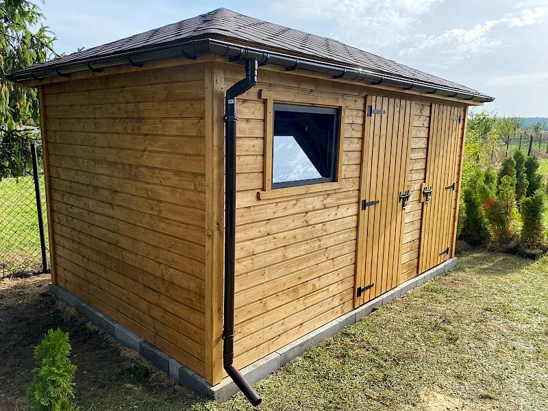 • Domek pokryty gontem bitumicznym (kolor i wzór do wyboru klienta)