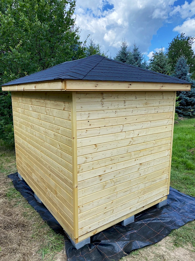 • Ściany wykonane z kantówki 9cm x 4cm