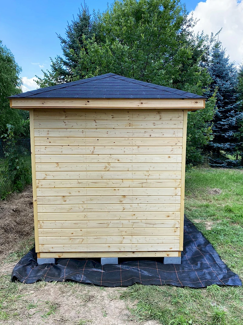 • Domek pokryty gontem bitumicznym (kolor i wzór do wyboru klienta)