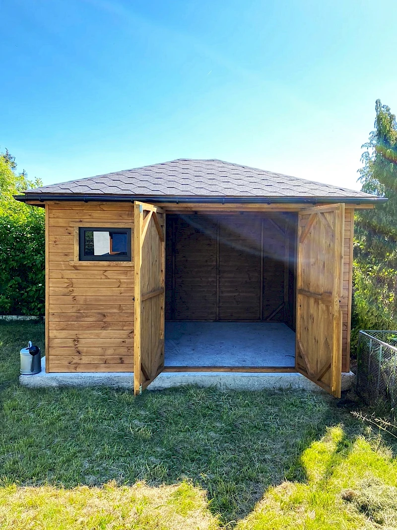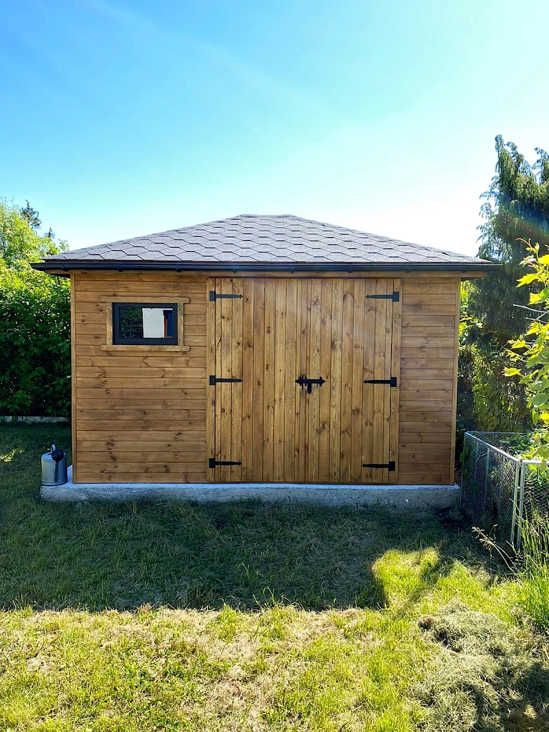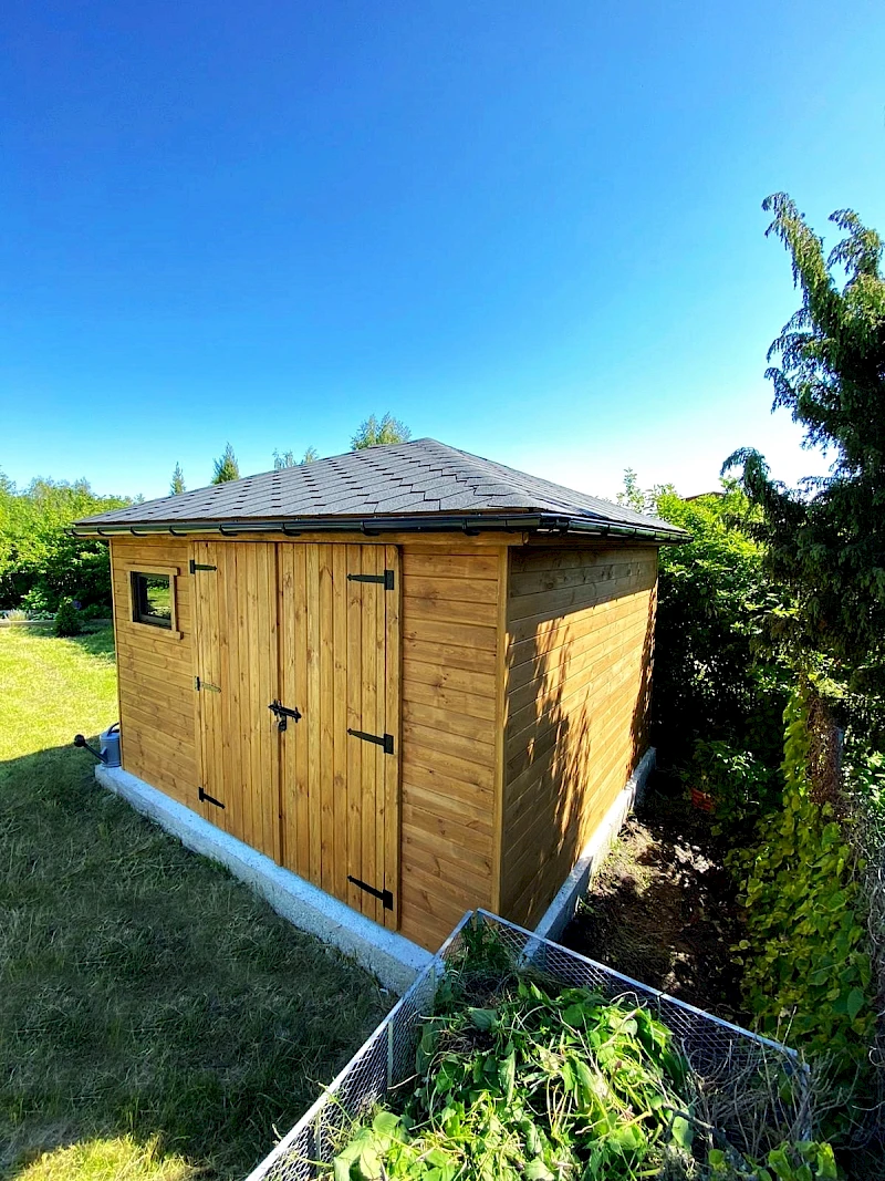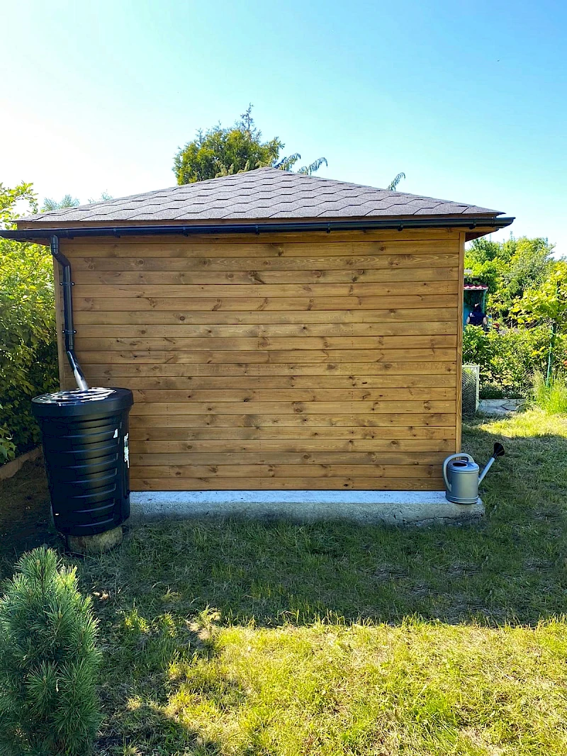 • Domek pokryty gontem bitumicznym (kolor i wzór do wyboru klienta)