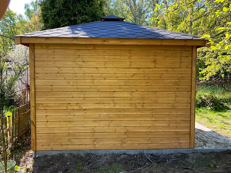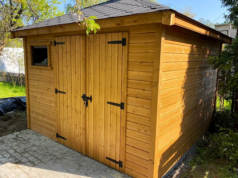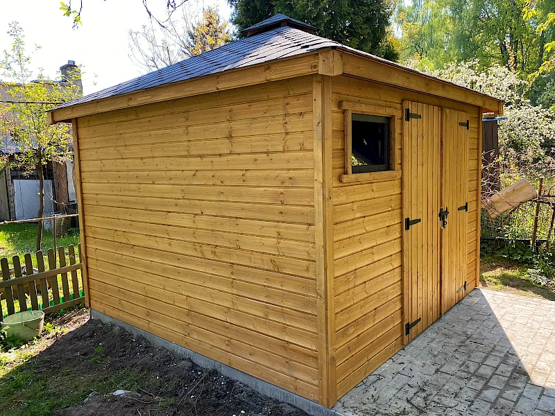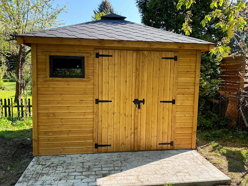 • Domek pokryty gontem bitumicznym (kolor i wzór do wyboru klienta)