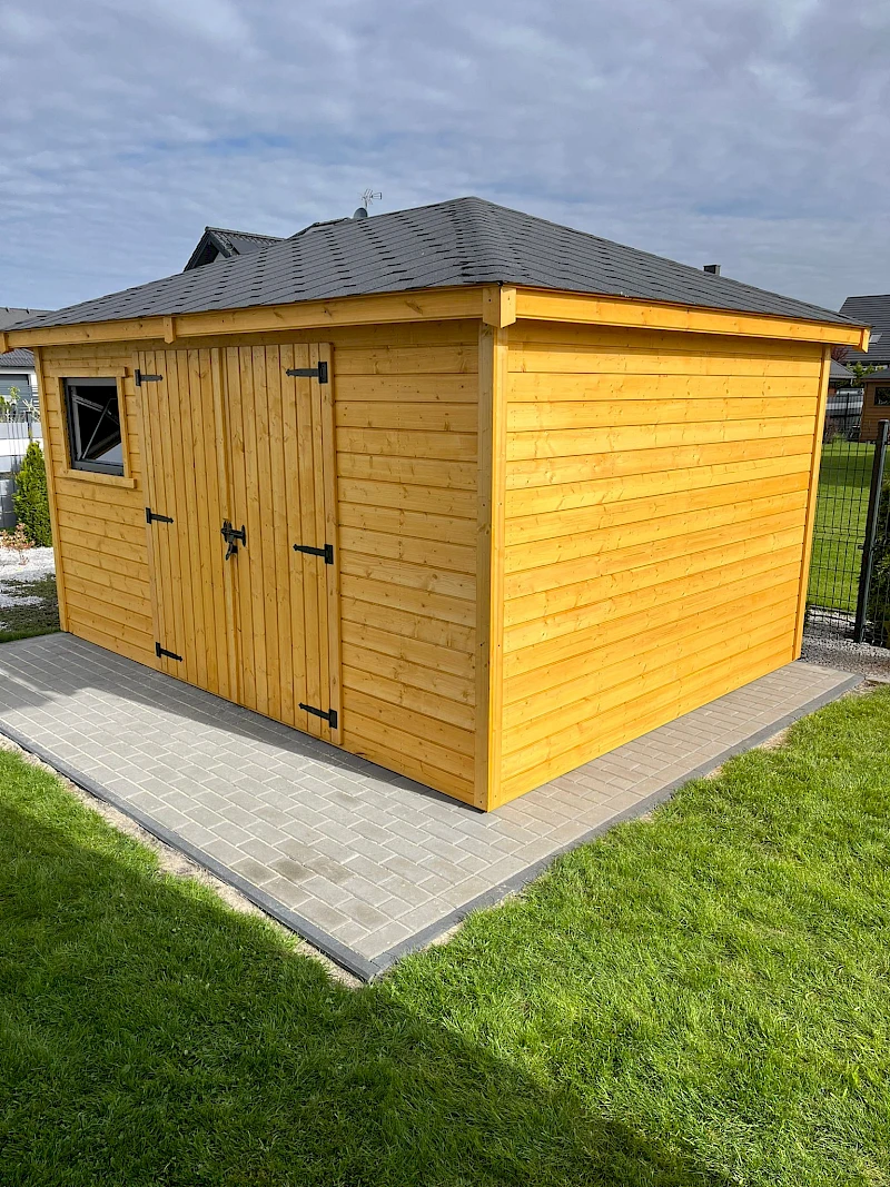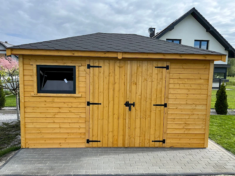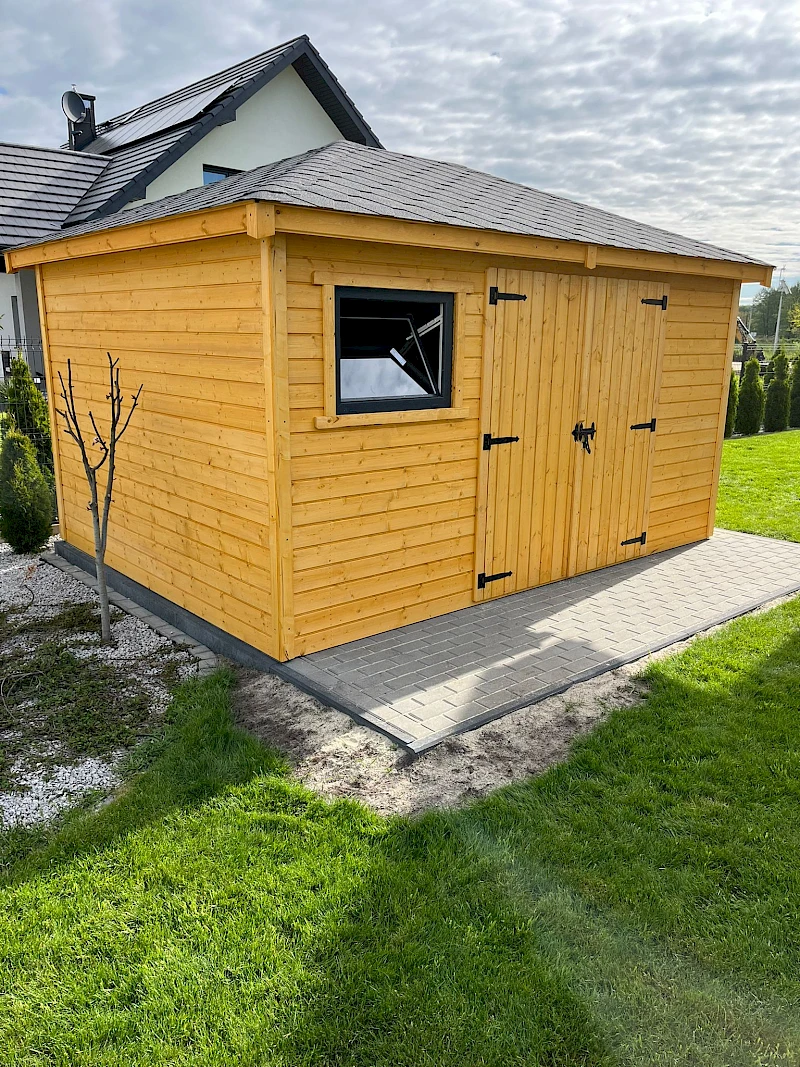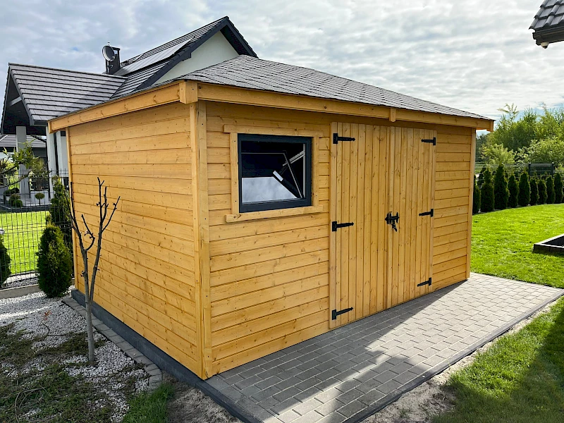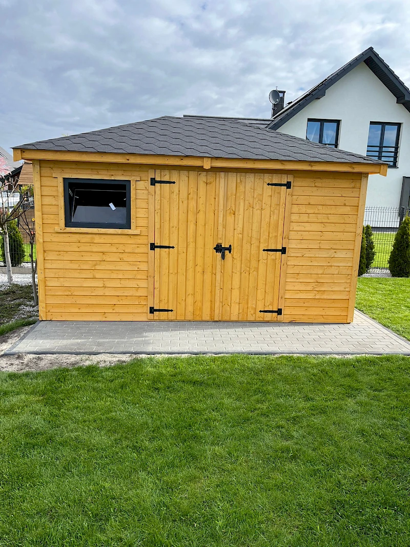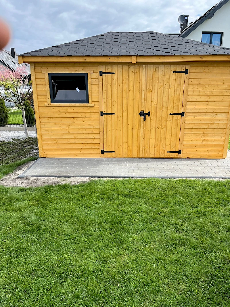 • Domek pokryty gontem bitumicznym (kolor i wzór do wyboru klienta)