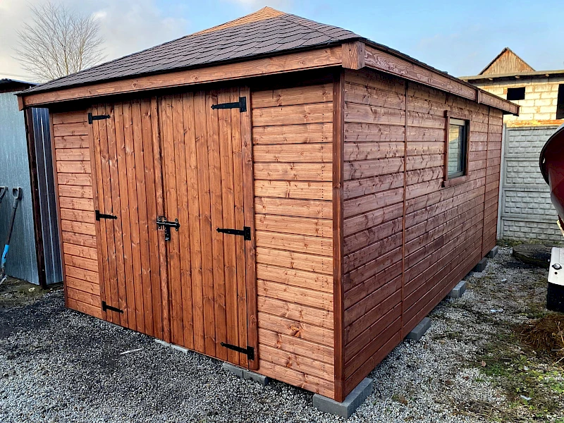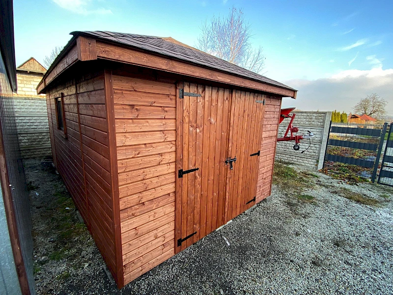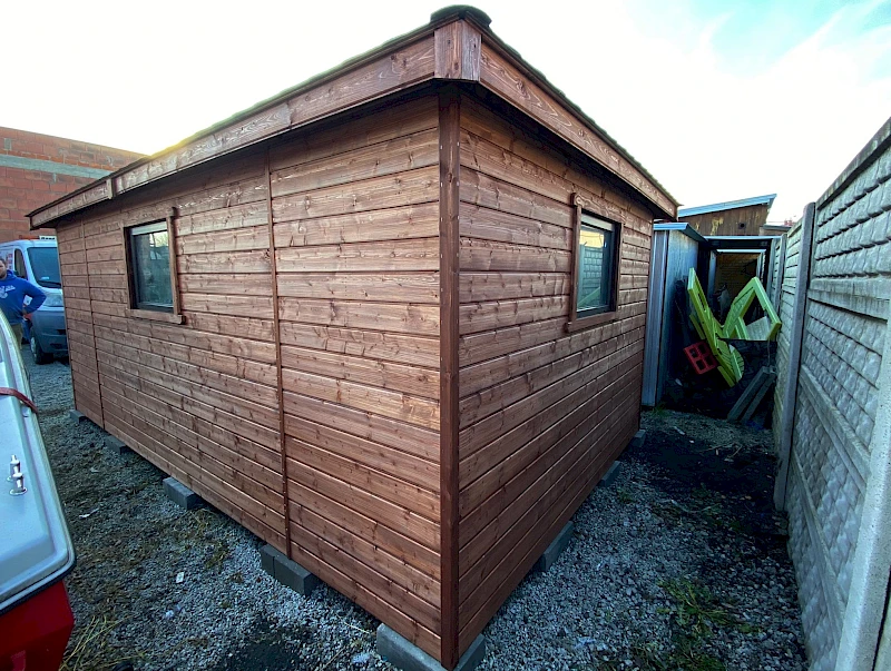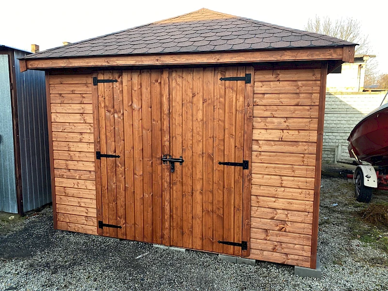 • Domek pokryty gontem bitumicznym (kolor i wzór do wyboru klienta)