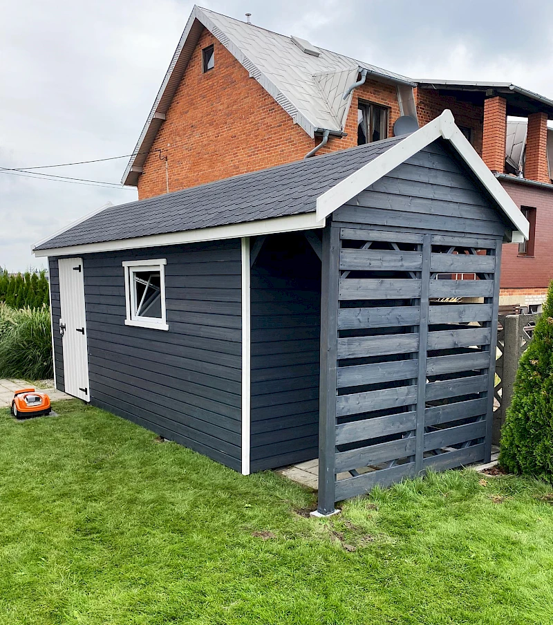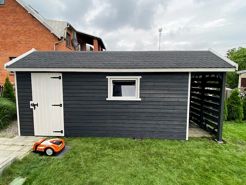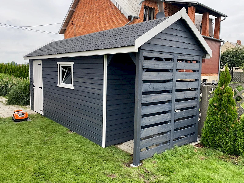 • Domek pokryty gontem bitumicznym (kolor i wzór do wyboru klienta)