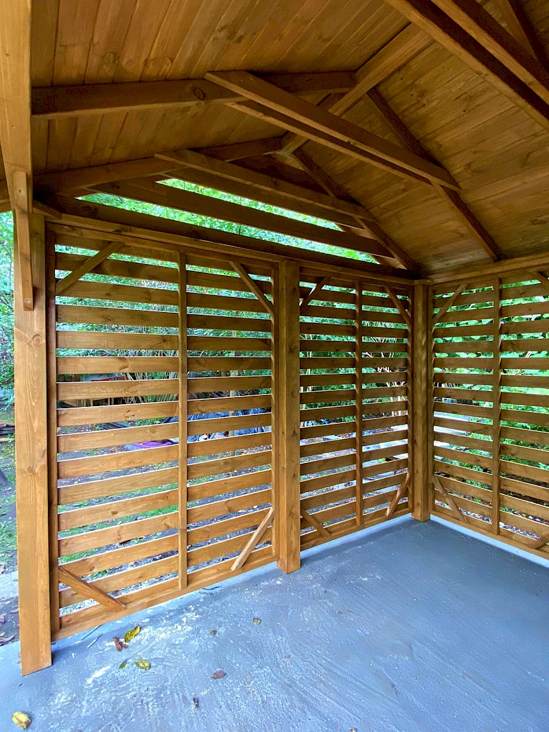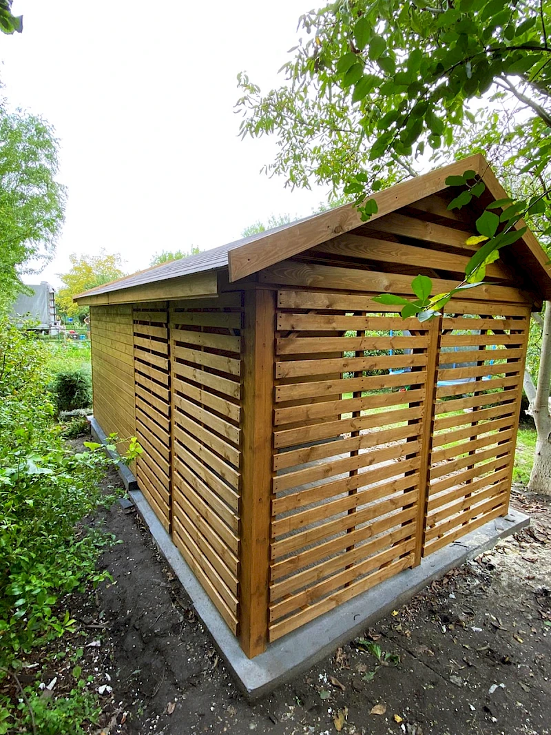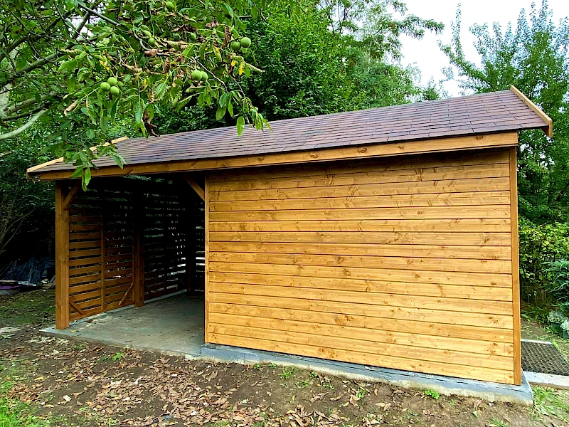 • Domek pokryty gontem bitumicznym (kolor i wzór do wyboru klienta)