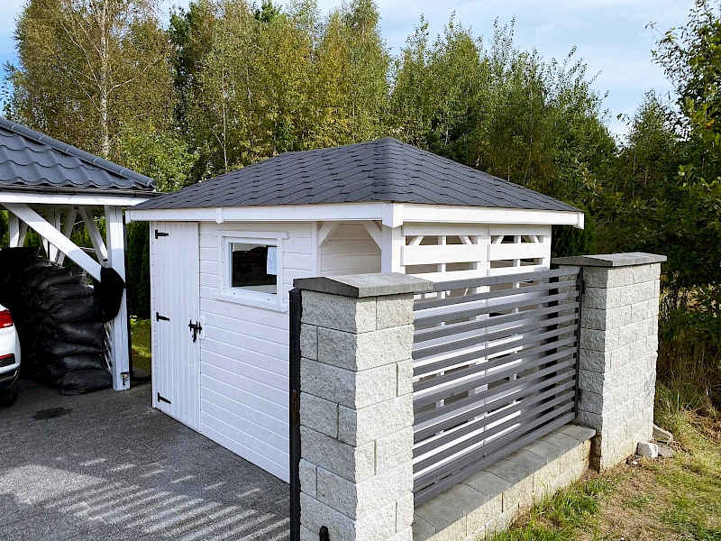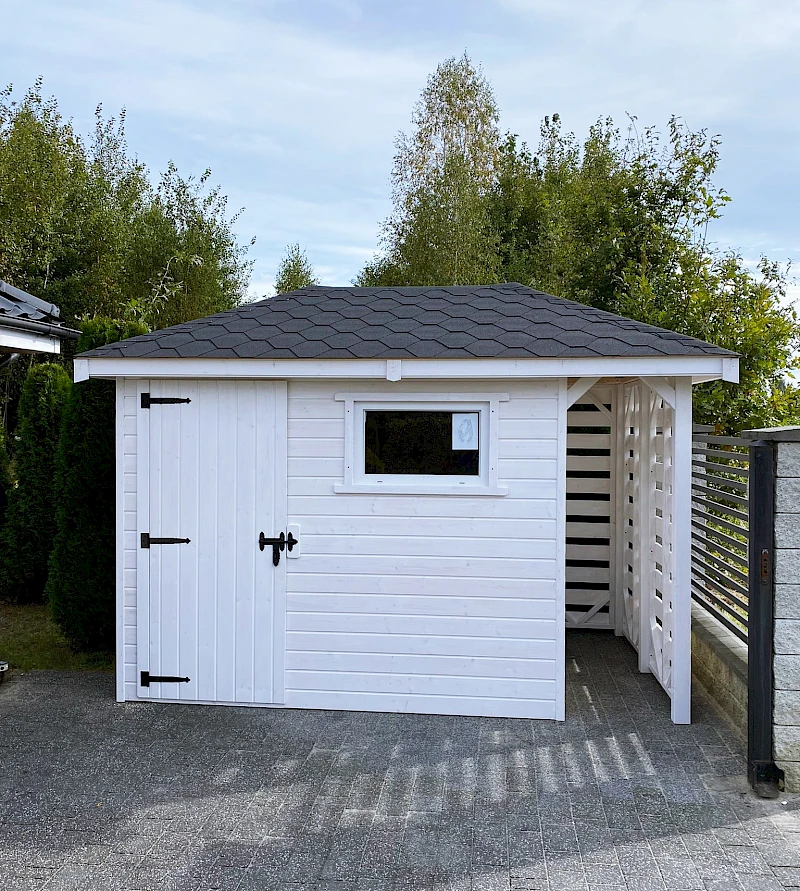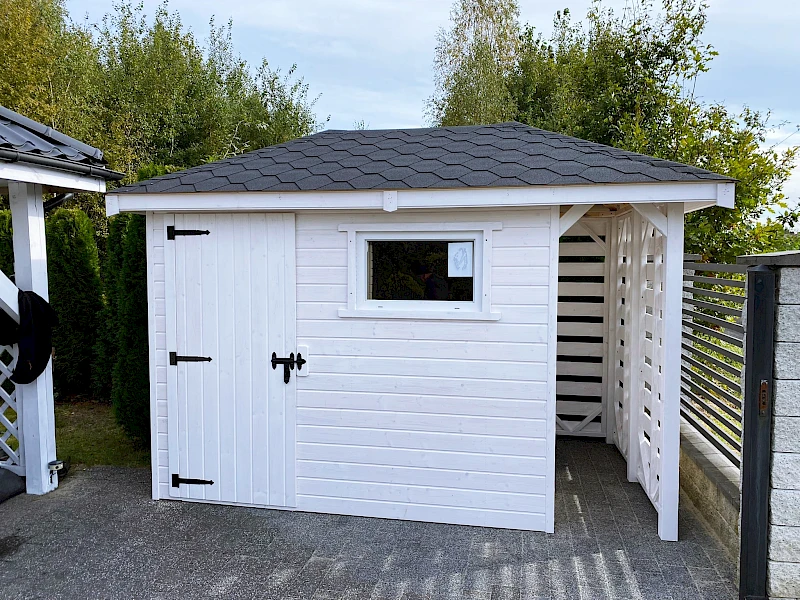 • Domek pokryty gontem bitumicznym (kolor i wzór do wyboru klienta)