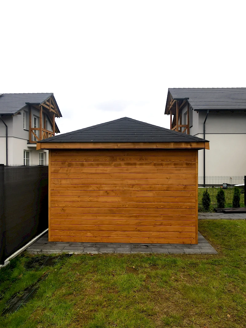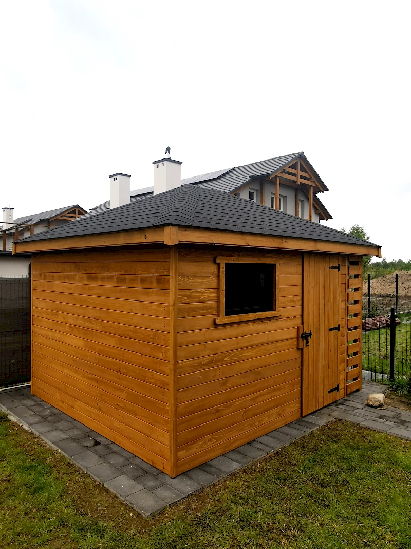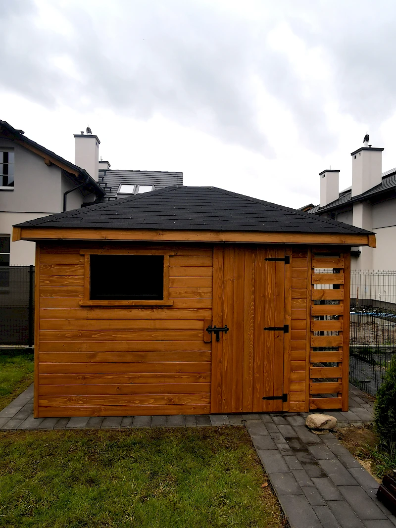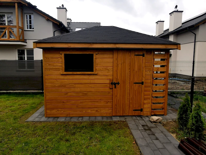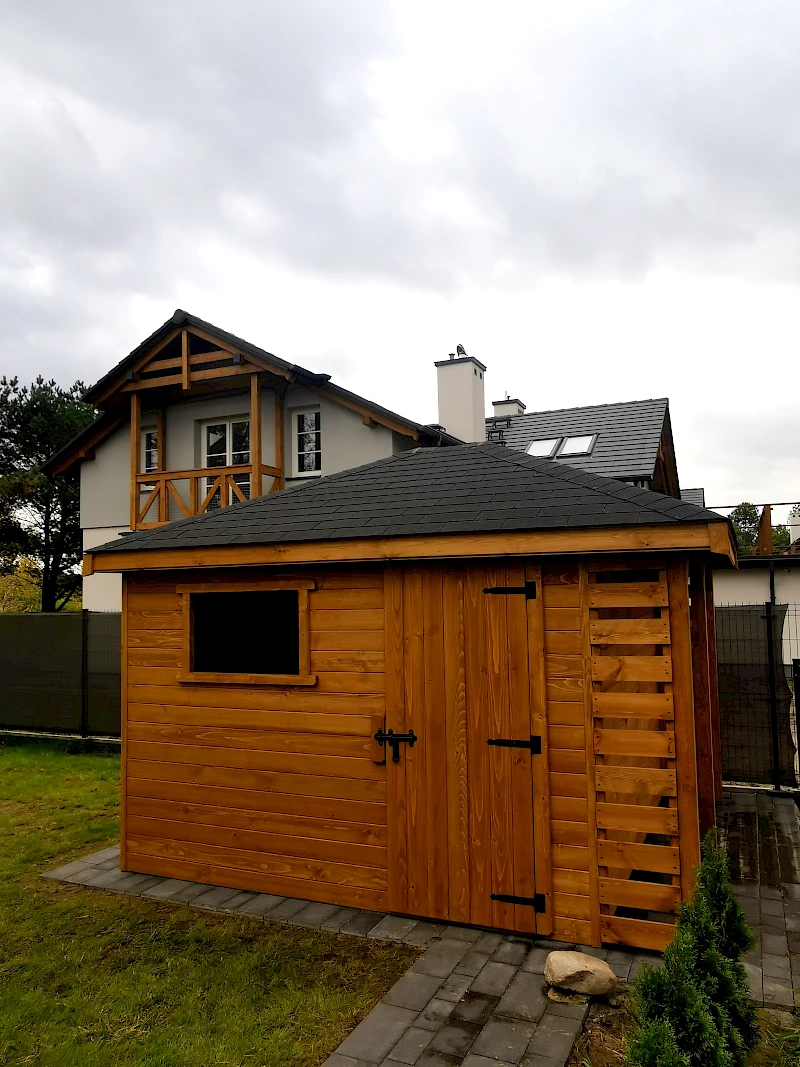 • Domek pokryty gontem bitumicznym (kolor i wzór do wyboru klienta)