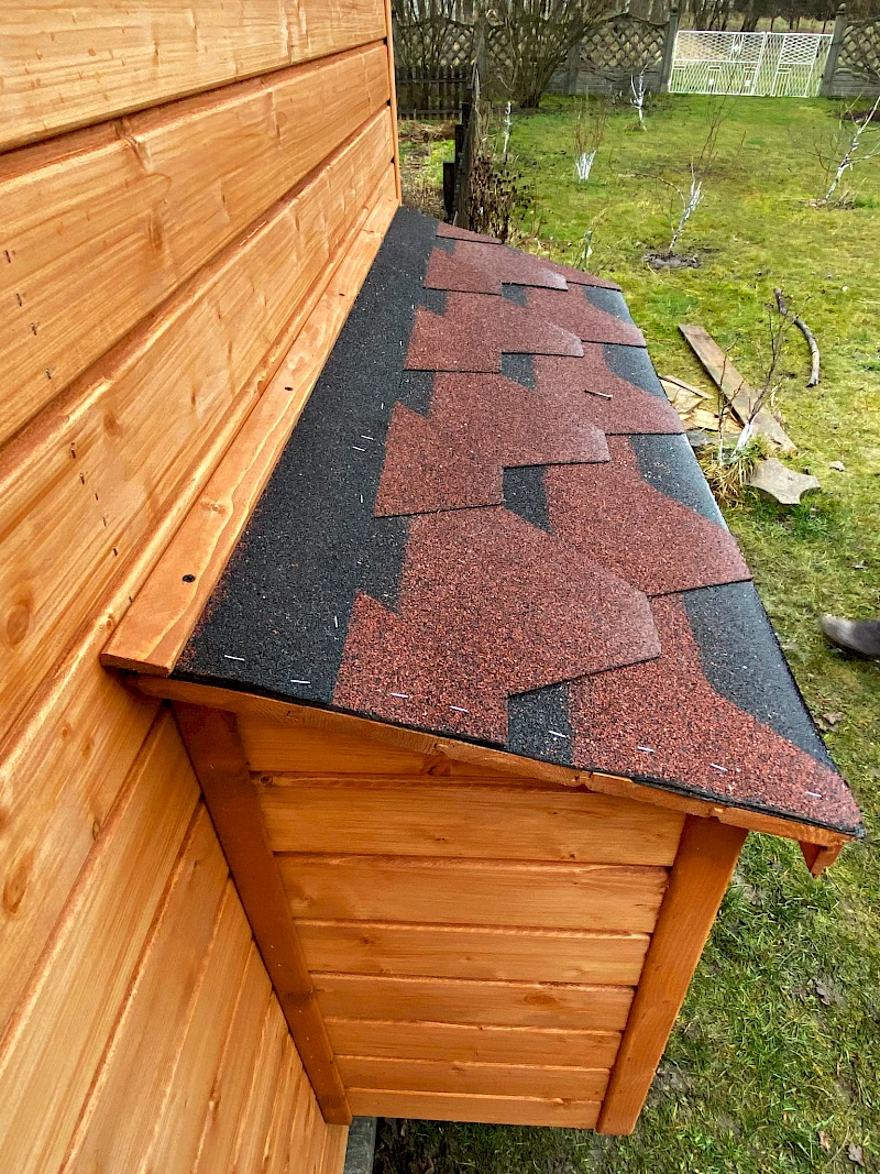 • Dach okryty gontem bitumicznym (kolor i wzór do wyboru klienta)